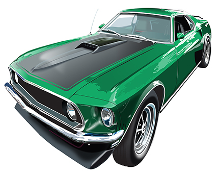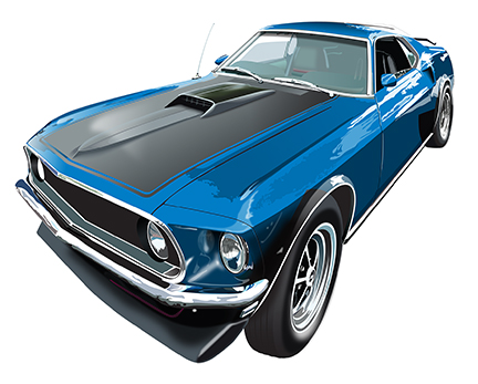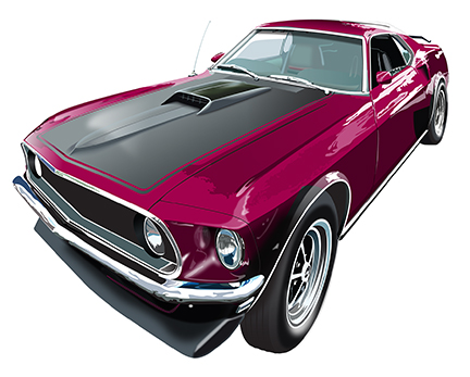 2018. Adobe Illustrator rendering of a Mustang. This was a special challenge for me. I created it in such a way that with the click of the mouse, I can change the color of the body.